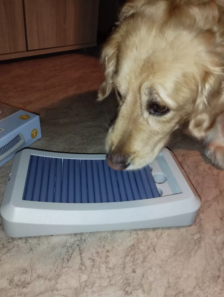 Das Trixie Rod Board ist jetzt eines meiner Lieblingsspiele in meinem Spielzeugschrank! Es macht mich schlauer, beschäftigt mich sinnvoll und ich bekomme gleichzeitig leckere Belohnungen. Ich kann es jedem Hund empfehlen, der Lust auf ein bisschen Kopfarbeit hat. Frauchen freut sich auch, weil wir dabei zusammen spielen können. Wenn ich fertig bin, gehe ich nämlich immer zu meinem Frauchen und schmuse mit ihr, um mich für das spielen zu bedanken.