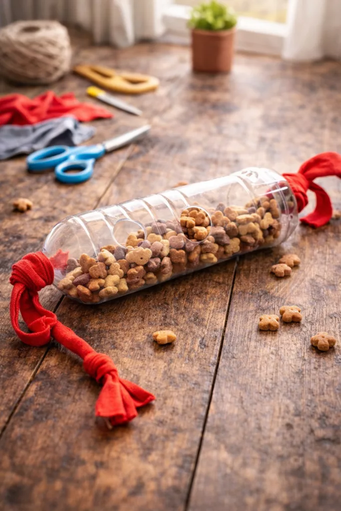Belohnung durch Eigenleistung: Leckerlis sind nicht einfach zugänglich. Der Hund „verdient“ sie sich durch geschicktes Öffnen.