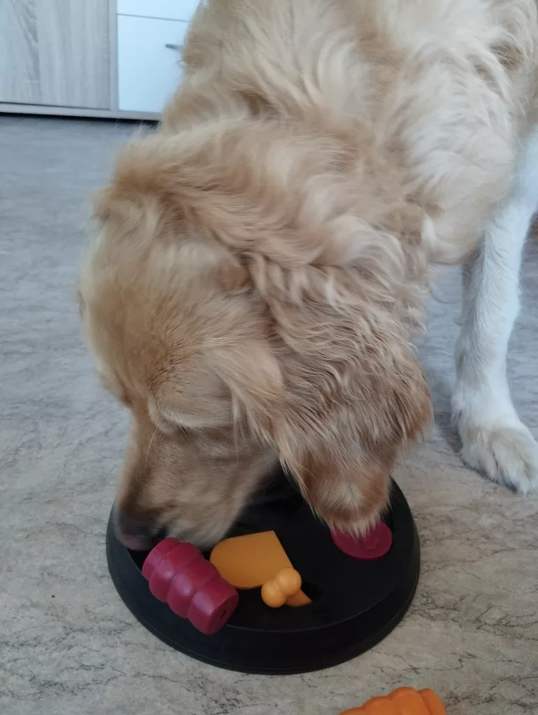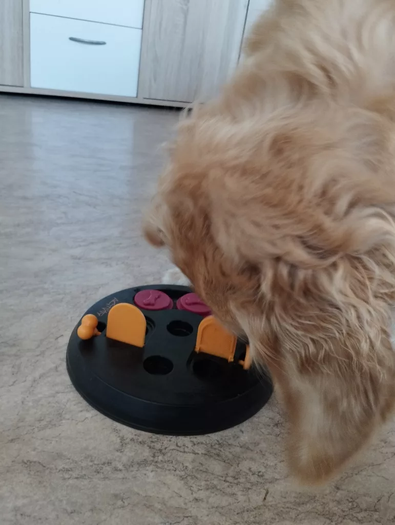 Belohnung durch Eigenleistung: Leckerlis sind nicht einfach zugänglich. Der Hund „verdient“ sie sich durch geschicktes Öffnen.