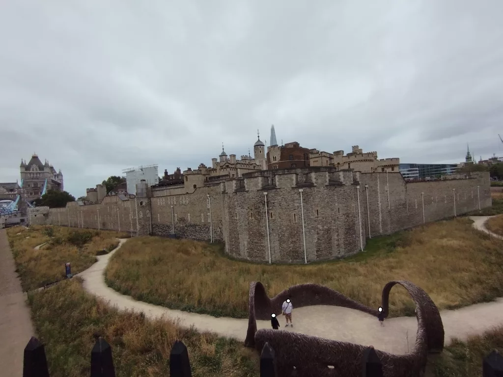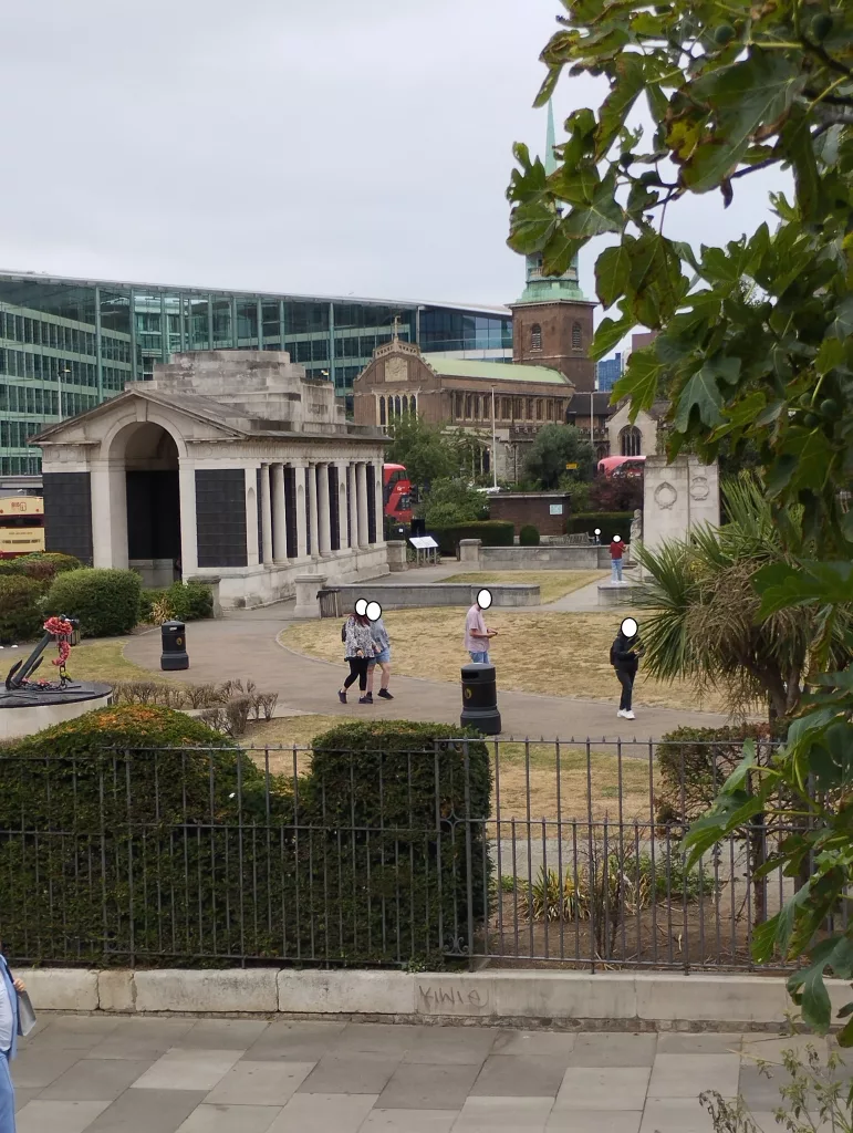 Das Welcome Center – Tower of London, ist der Eingangsbereich zum Tower of London. Hier kann man Tickets kaufen und man wird durch die Security kontrolliert. Das Tower Hill Memorial wurde im Jahr 1928 eröffnet und im Jahr 1955 und 2005 um weitere Denkmäler erweitert. Es soll an die Gefallenen des Zweiten Weltkriegs und an die Handelsmarine erinnern. Im Hintergrund sieht man die „All Hallows by the Tower“-Kirche, was soviel wie Allerheiligen am Turm bedeutet. Sie ist eine frühmittelalterliche, anglikanische Kirche aus dem Jahr 675 n. Chr., was neuere Forschungen aber in Frage stellen.