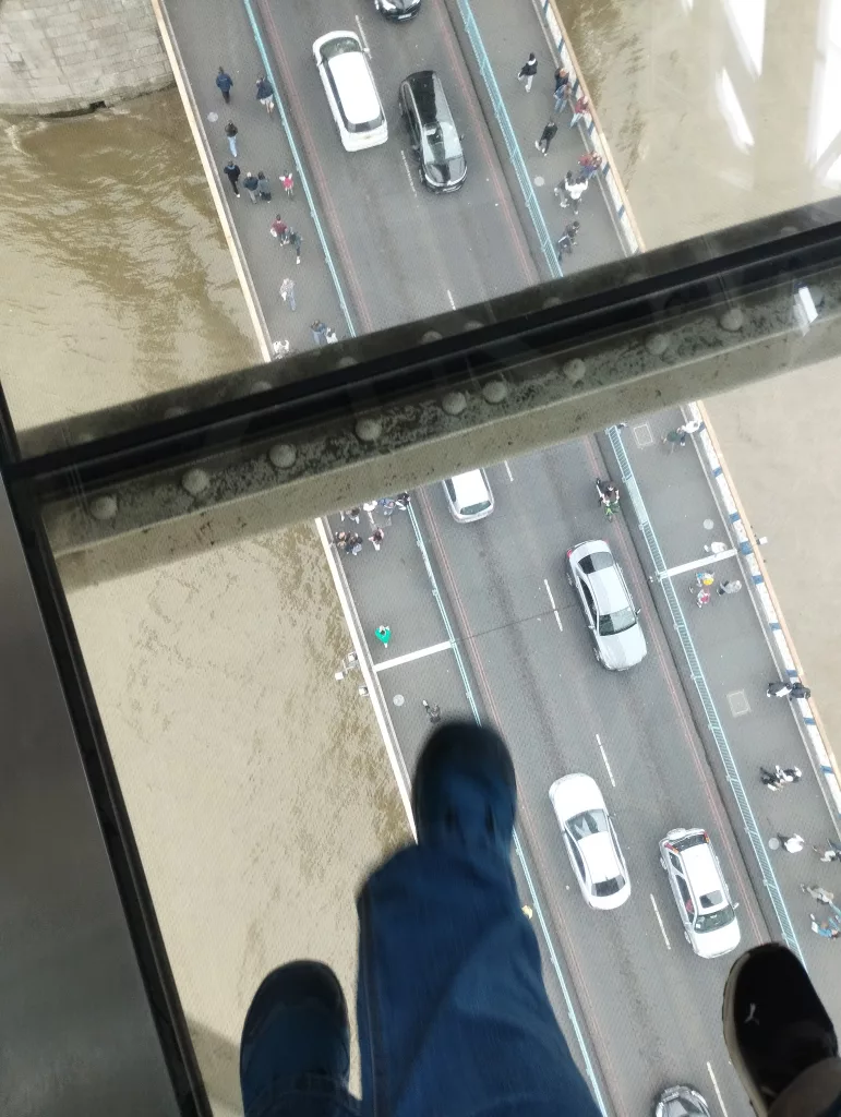 Die beiden Brückentürme haben eine Höhe von 65 Metern und bieten einen tollen Panoramablick auf London. Der Besuch der Tower Bridge beginnt mit dem Aufstieg von 206 Stufen im Nordturm, wo man einiges zur Geschichte der Tower Bridge erfährt. Danach überquert man die 70 Meter lange Fußgängerbrücke in luftiger Höhe, die auch einen Glasboden mit Blick nach unten bietet.