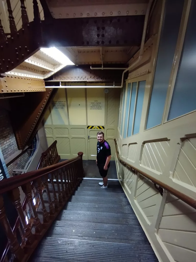Danach folgt man der blauen Linie, die von den Türmen in Richtung zu den historischen Maschinenräumen der Tower Bridge führen. Hier sieht man die originalen viktorianischen Dampfmaschinen, den kohlebefeuerten Kessel und die Antriebsstränge. Seit 1974 werden die alten Dampfmaschinen nicht mehr benutzt, da auf eine Ölhydraulik-Maschine umgestellt. Wir empfehlen euch, die Eintrittskarten vorab online zu kaufen, so erspart ihr euch lange Wartezeiten am Einlass.
