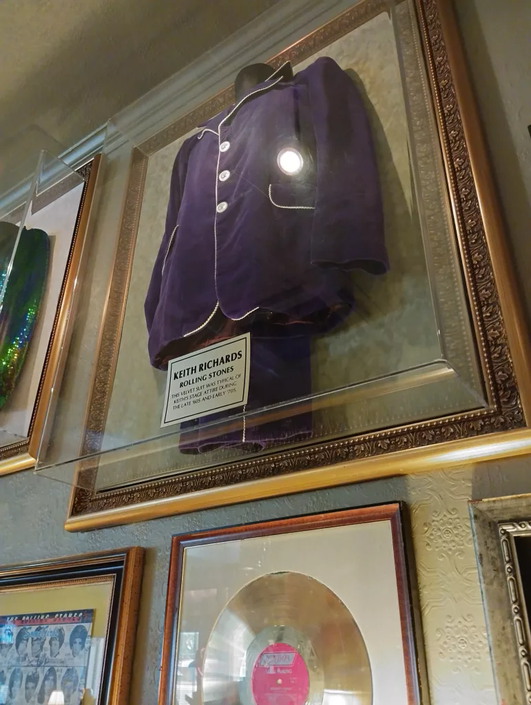 Die Hard Rock Cafés sind dafür bekannt, dass man an den Wänden einen großen Fundus an Rock’n’Roll Erinnerungen bewundern kann. Hier hingen viele Stücke der Rolling Stones, wie u.a. die Kleidung von Keith Richards und Mick Jagger.