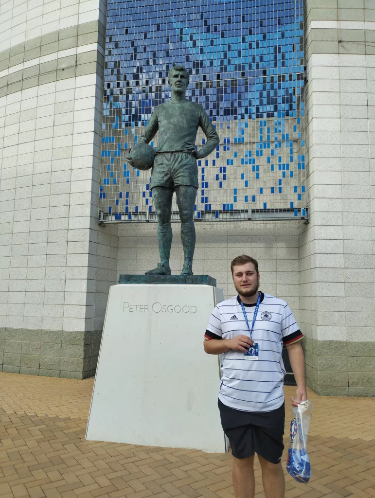 Am nächsten Tag ging es schon früh zu Stamford Bridge, dem Stadion von Chelsea FC. Das Stamford Bridge liegt im Stadtbezirk Hammersmith und Fulham. Es hat eine Kapazität von 40.341 Plätzen und wurde im Jahr 1877 eröffnet. Es ist im Gegensatz zu anderen Stadien zwar kleiner, aber trotzdem sehr schön.