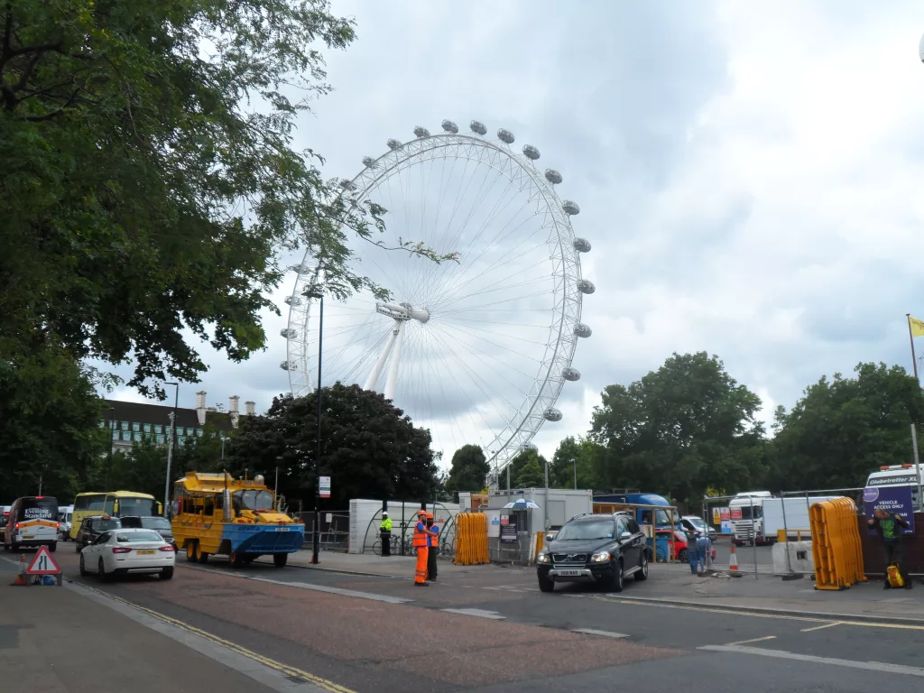 Das London Eye gilt als eines der Wahrzeichen von London und wurde im Jahr 2000 eröffnet. Es steht am Südufer der Themse und hat eine Höhe von 135 Metern. Es verfügt über 32 verglaste Gondeln, in denen jeweils ca. 28 Personen Platz finden. Die Fahrdauer einer Umrundung beträgt ca. 30 Minuten. Als wir dort ankamen, standen riesige Schlange vor dem London Eye und ohne Ticket mit schnellerem Eintritt, hätten wir ca. 2 Stunden warten müssen, was uns zu lang war. Daher unser Tipp, bucht frühzeitig euren Zeitslot, um lange Wartezeiten vermeiden zu können.