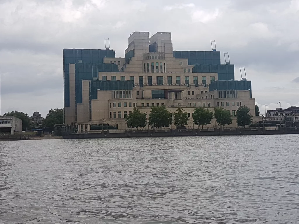 Der britische Geheimdienst (Secret Intelligence Service), auch MI6 genannt, hat ein prächtiges Gebäude an der Vauxhall Bridge, direkt an der Themse. Dies ist seit 1994 der Hauptsitz des britischen Auslandsgeheimdienstes. Die Fenster sind aus Sicherheitsgründen 3-fach verglast und es soll einen Tunnel unter der Themse geben, der nach Whitehall führt. Viele Teile des Gebäudes, liegen unterirdisch.