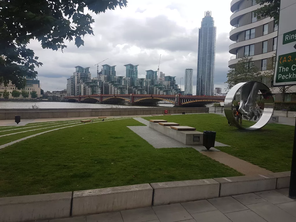 Die St. George Wharf und der Tower, ist ein Wohnkomplex mit 1400 Wohnungen, Büros und Einzelhandelsflächen. Das Gebäude soll an eine Windmühle erinnern, aber viele denken, es sieht aus wie ein Kreuzfahrtschiff.