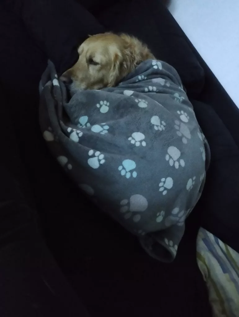 Als ich ein Baby war, habe ich die Decken schon bekommen und habe sie geliebt. Sie wurden von mir überall hin gezogen, da ich sie immer dabei haben wollte. Natürlich hatte die ein oder andere Decke von meinen spitzen Babyzähnchen mal ein kleines Loch, aber das wäre bei anderen Decken auch passiert. Als ich gewachsen bin, habe ich die Decken in der größten Größe bekommen und habe sie nun auch schon ca. 4 Jahre. Sie haben kein Loch, und ich liebe es im Körbchen darauf zu liegen oder auf dem Sofa damit zugedeckt zu werden. Ihr werdet jetzt zwar sagen, sie ist doch ein Goldi und sie hat dichtes Fell. Aber ich mag es gerne zugedeckt zu werden und dafür sind die Decken von Luciphia perfekt.