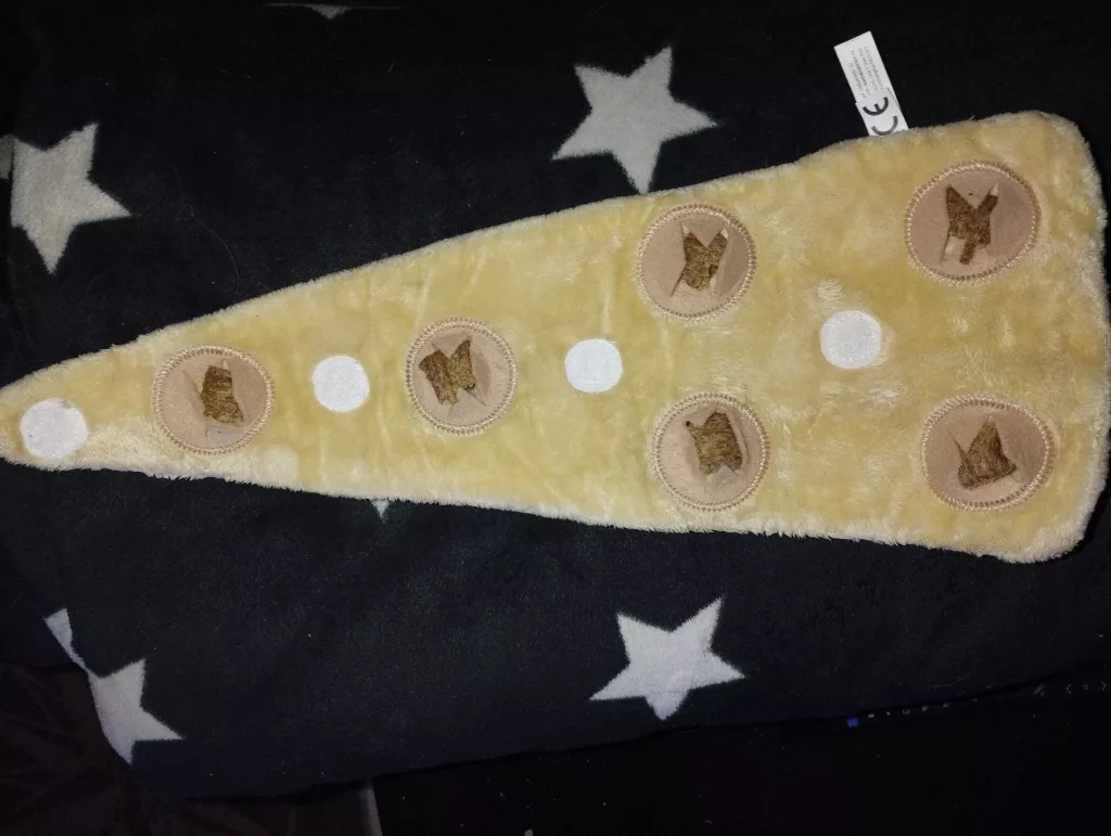 Man kann das Croissant problemlos mit Leckerlis befüllen. Es hat mich lange beschäftigt mit schnüffeln, lecken, drehen und ich musste wirklich überlegen, wie ich an jedes Leckerli komme. Ideal für zwischendurch oder wenn Frauchen/Herrchen mal keine Zeit hat.